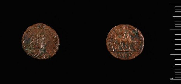 Editor: Here we have a coin, likely from Cyzicus, dating back to the time of Arcadius. It’s small, bronze, and honestly, pretty worn. What stories do you think this little thing could tell? Curator: Oh, if only it could talk! For me, it whispers of power, doesn't it? The weight of an empire, the daily grind of its economy all distilled into this one, humble object. I wonder what hands held it? What did they buy? Editor: That's a lovely thought! What about the imagery? I can make out figures, but they're so faint. Curator: Well, the figures are likely Arcadius himself, maybe with Victory, standard imperial fare. But think, each strike of the die, each coin minted, a tiny act of propaganda. Now, what do *you* make of it? Editor: I guess, thinking of it as propaganda gives it a whole new layer. It’s more than just money; it’s a message. Thanks! Curator: Exactly! Every artwork, no matter how small, is a world in miniature.