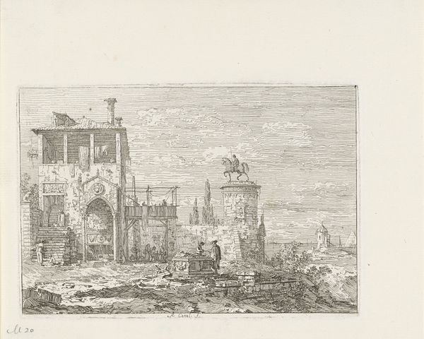 Editor: This is "Ponte Molle," a pen and ink drawing on paper made after 1652 by an anonymous artist, currently residing in the Rijksmuseum. The sketch-like quality and aged paper give it a feeling of looking at a historical document, almost like a scene from an old explorer’s journal. What can you tell me about the historical context of this drawing? Curator: Looking at “Ponte Molle,” we see more than just a landscape; we see a specific location and its shifting role in society. Ponte Molle, also known as the Milvian Bridge, was historically significant for being the site of Constantine's victory in 312 AD. The imagery surrounding Constantine became incredibly politically charged. Consider the way its portrayal shifts depending on the patron or political agenda of the artist, as the symbolism became a tool to communicate legitimacy of power. Editor: So the location itself carries meaning? How did this bridge come to be depicted in drawings such as these? Curator: Exactly. By the 17th century, the bridge also was used as a popular subject for artists in the Grand Tour circuit, where young European elites toured Europe to experience art, culture, and history. An artist would capture these sights in sketches and paintings, which in turn served as status symbols but also to communicate power. Think about how these drawings, easily reproducible, could spread ideas about Rome, influencing perceptions of the city's importance, power and historical legacy. Editor: So it is less a representation of a real location, and more a representation of power dynamics and societal change? Curator: Precisely! What seems at first glance a simple landscape drawing can unpack the intertwined history of politics, artistic practice and social status, revealing how art played a vital public role in shaping cultural perceptions and historical narratives. This reminds me that our perspective is never neutral, always viewed from our contemporary world. Editor: I never would have looked that deeply, thank you. I’ll consider the power relations in a work next time I see it!