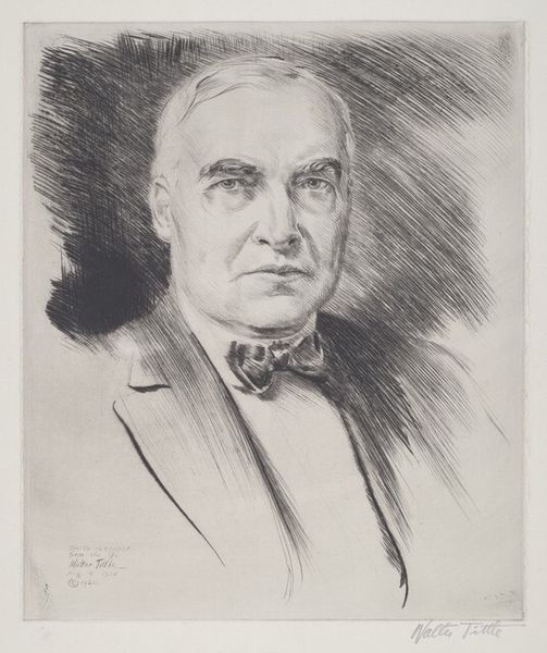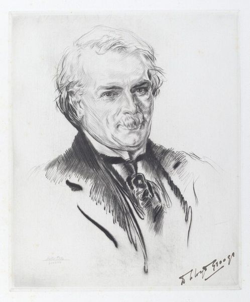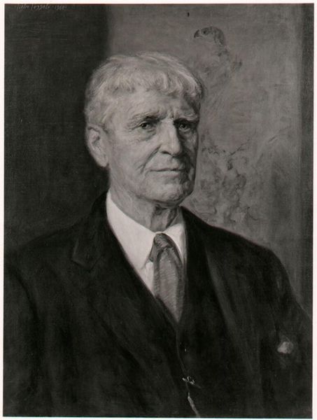 Editor: Here we have Pietro Pezzati's portrait of Charles Sydney Hopkinson. It seems to capture a very specific type of turn-of-the-century intellectual. How would you interpret this work in the context of portraiture at that time? Curator: It speaks to the democratization of portraiture. While traditionally reserved for nobility, portraiture increasingly included academics and professionals like Hopkinson. This shift reflects a broader social change where intellectual achievement gained prominence. What does this suggest about the values of the institutions commissioning these portraits? Editor: Perhaps that they were trying to align themselves with a new elite based on knowledge. I'd never considered that before! Curator: Indeed. This artwork serves as a mirror reflecting those evolving social values. Seeing it that way, what do we make of Pezzati's austere style?
