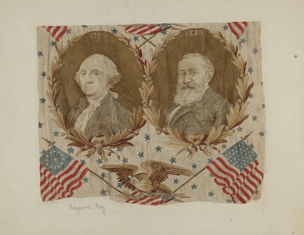 Curator: I am struck by how the light and delicate washes of color invite a feeling of contemplation in this rendering of an American flag. Editor: That’s quite a contrast to the boldness typically associated with such imagery! We're looking at "Flag," a watercolor work made circa 1936 by Joseph Sudek. What compositional choices do you think contribute to this softer reading? Curator: For one, Sudek’s palette—muted reds, whites edging toward ecru, and a faded blue—gives it an aged quality. Then consider the meticulousness of his parallel strokes to indicate fabric texture, giving it material weight. Also note how it is suspended: he renders its hanging system so realistically, a grid-like shadow it creates above, subtly connecting it with its direct environment. Editor: All true, and perhaps this formal approach shields him from addressing political realities explicitly during the rise of European fascism. I wonder how audiences at the time might have received the symbol when seen in a state of slight deconstruction. How might they relate this depiction to the socio-political turbulence they may have been experiencing? Curator: The realism style—rendering a flag as accurately as possible, without commentary—refuses an ideological claim outright. Instead, attention shifts to the pure qualities of his materials: pigment, paper, and line. It encourages viewers to pause over technique first. Editor: But can we divorce any image of the flag, especially from that era, from broader social significance? Surely the flag could evoke questions about national identity and cultural belonging—issues still acutely relevant today. The slightly unorthodox star configuration makes me ask who is represented, and who gets to decide that representation. Curator: True, abstraction in any form contains the seed of some ideological construct. And yet Sudek insists, ultimately, that we contemplate only the essence of the art making. Editor: An essence that perhaps still echoes in ways unforeseen? Thanks for these close readings! Curator: My pleasure. A fruitful exchange.