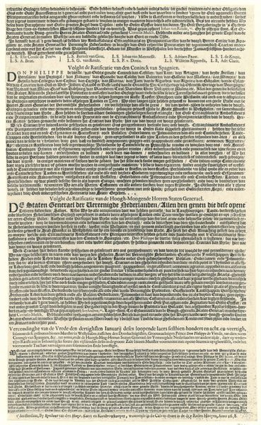 This is the fifth leaf of the ‘Traktaat van de Vrede van Munster’, printed in 1648 by Rombout van den Hoeye, marking a pivotal moment in European history: the Peace of Münster. The text, dense and authoritative, embodies a complex negotiation between the Dutch Republic and Spain. The document lays out the powers of the plenipotentiaries involved, those individuals entrusted with the authority to broker and ratify peace. The very act of codifying this agreement speaks to issues of power, sovereignty, and self-determination. Consider the historical context: The Dutch Republic, after decades of struggle, was asserting its independence from Spanish rule. As such, this isn’t just a treaty; it's a declaration of identity and autonomy. Imagine the weight of these words, the future of a nation hanging in the balance, captured in ink on paper, a testament to the human desire for resolution after prolonged conflict. This is more than a historical record. It’s a deeply human story of resilience and the pursuit of lasting peace.