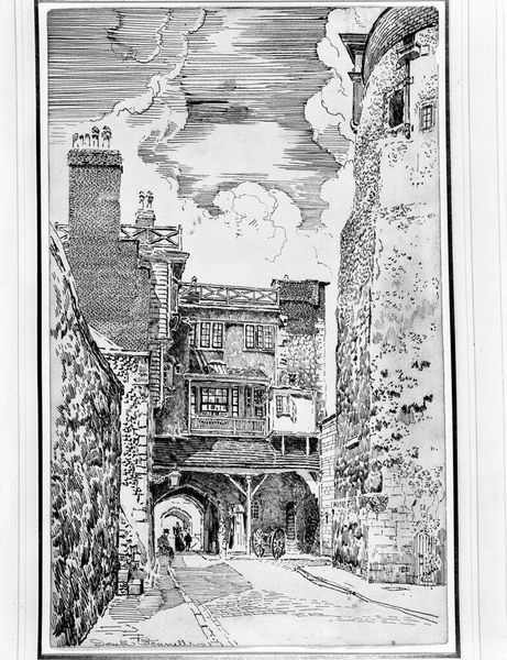 Curator: Here we have Andrew Fisher Bunner’s “Sketch of Houses near SS. Giovanni e Paolo, Venice,” created in 1883 using pen, ink, and charcoal on paper. Editor: My initial reaction is one of intricacy. The textures achieved with simple lines are remarkable, creating a very detailed, almost dreamlike view of Venice. Curator: Precisely! The drawing showcases an intriguing interplay of light and shadow. Note how Bunner uses line weight to define forms and create depth, observing a balance and harmony within its representational approach. Editor: Beyond the artistic merit, this drawing acts as a time capsule. Consider Venice in 1883—a city steeped in history and art but also navigating significant social and political shifts following its annexation to the Kingdom of Italy just seventeen years earlier. Was Bunner consciously depicting a romanticized vision or something else? Curator: The very style lends itself to that perspective, wouldn’t you say? He favors the picturesque over any sort of harsh realism. There's an idealized sensibility that elevates this from mere documentary. Editor: That sensibility surely taps into Venice’s existing representation in art and literature—the wistful depictions in paintings, poems, and plays, which bolstered tourism and reaffirmed its iconic status for viewers from afar. The lack of people, perhaps, adds to that effect? Curator: True, their absence brings attention to the architectural forms themselves: see how Bunner subtly varies his strokes, providing the whole construction with character? It is like we're seeing a protagonist instead of a place, which only encourages subjective feeling. Editor: Perhaps that is the charm, then. Beyond formal construction and Bunner’s obvious technical skill, "Sketch of Houses near SS. Giovanni e Paolo, Venice" highlights the fluid, ever-shifting relationship between image, ideology, and urban experience. Curator: Indeed. Viewing it through both the lens of formal construction and historic position deepens our awareness of this work. Editor: A fine note to end on! Thank you.