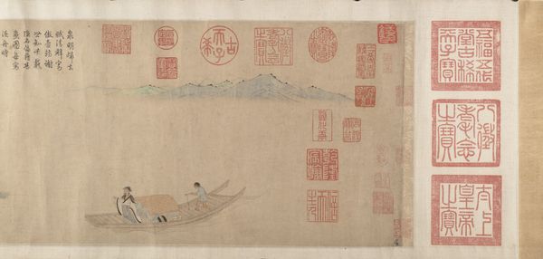 Editor: Kaihō Yūsetsu's "Zhou Maoshu Admiring Lotuses," painted sometime between 1634 and 1666 using ink and watercolours. I find its subdued palette creates a serene, almost dreamlike quality. What does this work suggest to you? Curator: The painting illustrates the philosopher Zhou Dunyi, known as Zhou Maoshu, who lived during the Song Dynasty. He's particularly associated with his love of lotuses, viewing them as symbols of purity and incorruptibility. Consider how Yūsetsu, painting much later during a period of social and political change in Japan, might be using this historical figure. Does it evoke a longing for a simpler, perhaps idealized past? Editor: So, you’re saying it’s more than just a tranquil scene? Curator: Exactly. Look at the positioning of Zhou Maoshu, seemingly adrift amongst the lotuses. How does that reflect his philosophy being interpreted, received, or even questioned by the art world and audience of Yūsetsu’s time? Are they literally adrift from the world, seeking enlightenment in a tumultuous era? Editor: That's a completely different perspective. I was only considering the aesthetic value and missed how Yūsetsu might be using historical context to make a social comment. Curator: Art doesn't exist in a vacuum. Even seemingly simple imagery carries layers of meaning informed by its time. And those layers, filtered through museum display, further affect modern understandings. Editor: It’s fascinating to think how much historical context shapes the meaning we find in art. Thanks, I’ll definitely look at art with a broader lens. Curator: My pleasure! It’s exciting when those layers start to become clear!