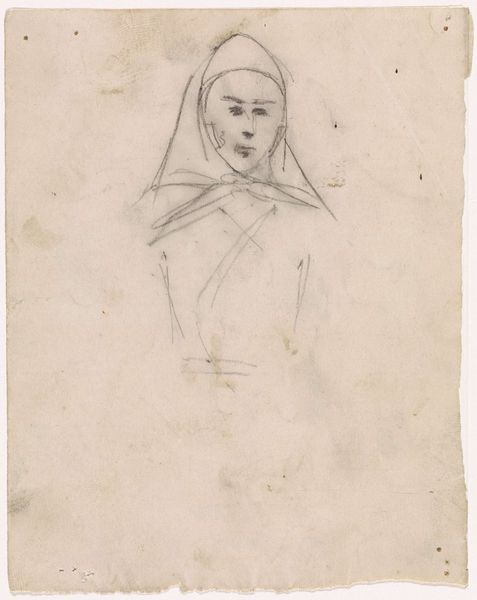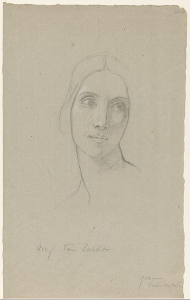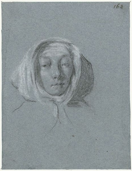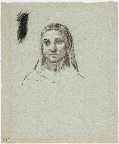 Curator: Here we have Washington Allston’s “Study of Ann Channing Allston, for ‘The Valentine’”, a delicate drawing. Editor: There’s a certain melancholy in this portrait, a quiet stillness. The soft graphite seems almost to absorb light rather than reflect it. Curator: Consider the constraints placed upon women during Allston's time; Ann's identity was largely defined by her relationship to her husband. This study, though preliminary, offers a glimpse into her personhood, shaped by societal expectations. Editor: Yes, and look at the paper itself – the texture, the slight imperfections. This wasn’t a mass-produced item; it was carefully chosen, handled. The drawing becomes a record of Allston’s engagement with his materials, his labor. Curator: I find it fascinating how Allston uses light and shadow to capture Ann’s gaze, her expression hinting at inner thoughts and emotions, defiance maybe? Editor: Perhaps. Or perhaps it's simply the mark of the graphite on the paper, a record of the artist's hand, making it seem a representation of lived reality. Curator: I am left pondering the role of women artists in our present cultural moment. Editor: I am left considering the act of portraiture itself, and its relationship to commodity and labor.