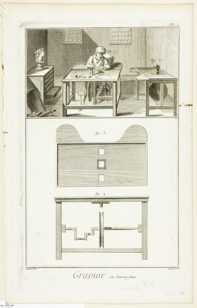 Editor: This is Robert Bénard’s "Minting, Furnace with Bellows for Gold." It's a print, and it feels almost architectural in its precision. What stands out to you in this depiction of such an industrial process? Curator: The furnace and bellows are instruments of alchemy. Bénard presents not just a process but a transformation – base metals into gold, potential into wealth. It resonates with the human desire to control destiny through symbolic action. Do you feel the weight of that ambition? Editor: I do now! It’s like the artist is showing us the power, and the burden, of creation. Thanks! Curator: Indeed. Seeing the cultural continuity in such a detailed image enriches our understanding, doesn't it?