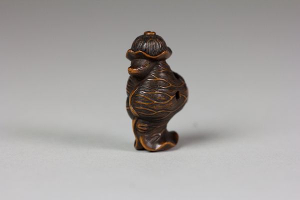 This Netsuke, depicting Benkei carrying the Bell of Miidera, was created by Sanko. Netsuke are miniature sculptures that served a practical function in traditional Japanese society. Imagine the cultural backdrop of feudal Japan, where fashion met utility. This netsuke is more than just a carving; it's a representation of power, loyalty, and folklore. Benkei, a warrior monk, embodies strength. He is shown carrying a temple bell, illustrating the rich narratives and moral lessons embedded in these small, everyday objects. The choice of subject matter reflects a reverence for martial prowess and the integration of Buddhist beliefs into the samurai culture. Think about the original owner: what did this little sculpture mean to them? A personal emblem, a connection to stories, or a reflection of social status?