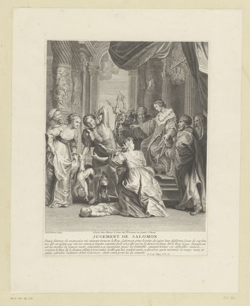 Reinier Vinkeles made this print, *Allegorie op de nieuwe psalmberijming*, in 1773. The work is made of etching and comes from the tradition of printmaking, a key means of disseminating information in the 18th century. Printmaking relies on the skilled labor of the artist, of course, but also on the press operator and the paper maker. Each of these roles demands precision and care. Here, Vinkeles is using etching. He would cover a metal plate with a waxy ground, draw through it with a needle, and then bathe the plate in acid. The acid bites into the exposed metal, creating lines that hold ink. The resulting image is finely detailed, almost photographic in its realism. This was essential for the print to function as a persuasive piece of political communication, in this case, regarding new translations of the Psalms. Seen in this light, the print is not just an image, but a product of collective labor, used in the service of political and religious ideology.