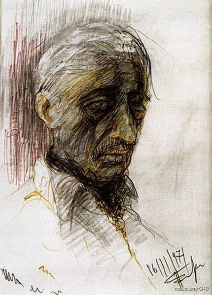 Arnold Peter Weisz-Kubínčan made this *Portrait of a Man* using colored pencils. I really feel the surface in this piece; the tooth of the paper comes through the marks. It's like Weisz-Kubínčan is feeling around for this guy's face with color. He's laying down these strokes that are full of doubt and discovery. Look closely, and you'll see how the lines aren't just descriptive; they're also emotional. The green and blue around the face, it gives the whole thing this otherworldly, melancholy vibe. It reminds me of some of the drawings of Marsden Hartley, that same sort of searching for something beyond the surface, a quest for some inner truth. You can see that artmaking is an ongoing conversation between artists, where meaning isn’t fixed. There's room for feeling and thinking in all its beautiful, messy ambiguity.