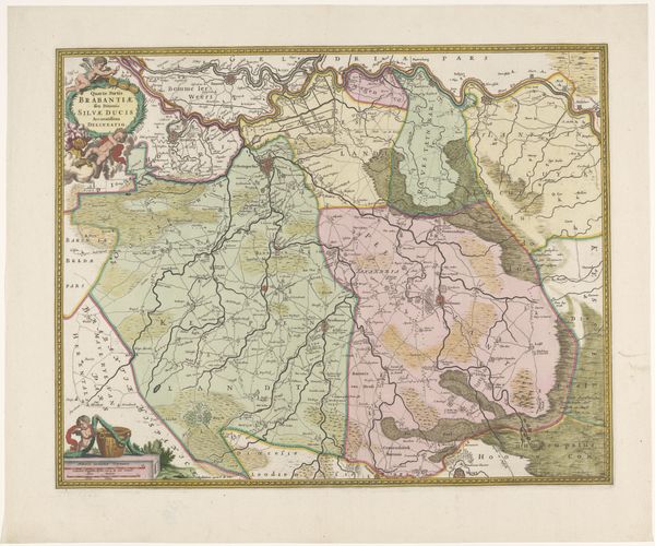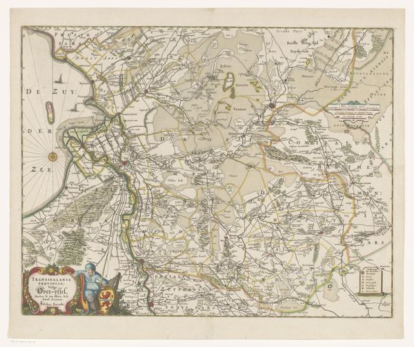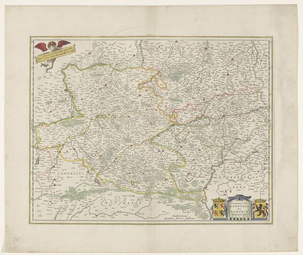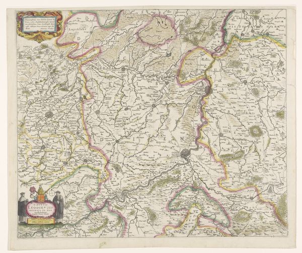 Curator: Looking at this print from 1633, titled "Kaart van een deel van het verloop van de Rijn, de Waal en de Maas"—that's "Map of a part of the course of the Rhine, the Waal and the Maas" in English—it's striking how these major rivers are laid out. It comes to us from an anonymous artist and is currently housed in the Rijksmuseum. Editor: It immediately reminds me of ancient cosmological diagrams. All those meandering rivers…they look almost like veins connecting different parts of a body. There's something very life-giving about this visual language, though, ironically, very focused on a geographical perspective. Curator: That connection isn’t accidental. Cartography was indeed tied to political power and territorial claims. Mapping a space was synonymous with controlling it. River systems like these were especially vital to Dutch economic and political influence. Editor: Exactly. You see how the waterways become visual metaphors for the circulation of power and goods? I'm drawn to the visual language employed: towns symbolized as miniature clusters of houses, forests represented as stylized trees. It's all meant to quickly impart information but it's also subtly communicating much more, don’t you think? Curator: Precisely, it reveals much about what 17th-century viewers considered valuable to illustrate in terms of landscapes. The act of detailing certain towns over others certainly speaks to their status and relative significance to Dutch economic interests at the time. Editor: And beyond the functional, I can't help but see the underlying psychological impact. The map provides a sense of orientation, control over one's world, but it also instills a subtle pride in the observer, a sense of dominion over their domain. Curator: Ultimately, this "Map" demonstrates how geographical visualization evolved into more than a tool of navigation. It served as a crucial instrument of expanding influence and maintaining a cultural presence, a visualization strategy employed in shaping socio-political perceptions and colonial control. Editor: So, more than a map, this print functions almost like an early form of national branding, projecting an image of power, control and prosperity. I love it, this peek into the collective psyche of an emerging empire through its symbols.
