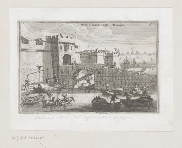 Editor: This is an engraving, “Gezicht op Islan in Dalmatië,” dating from around 1702. It’s by an anonymous artist, currently held at the Rijksmuseum. The image shows this fortified structure overlooking what seems like quite desolate landscape, rendered in a meticulous Baroque style. It makes me feel quite small and insignificant. What really stands out to you? Curator: Desolate is a striking choice, a word pregnant with feeling. What whispers that to you? Is it the solitary figures near the overgrown tree in the foreground, or the castle standing aloof? To me, this isn't just a picture. It's a meditation on perspective. Consider how the landscape swells to embrace the fortress. Isn’t it romantic in a way, to distill place down to line and shadow, hinting at both grandeur and the quiet melancholy of time. I'm fascinated by the meticulous detail alongside an overarching simplicity. Editor: I see what you mean. Maybe "desolate" was too strong, but it definitely feels... distant, or detached? I am noticing more now how the lines feel both very precise, but also…almost dreamy. How did they achieve that balance? Curator: Ah, the magic! Engraving allows for these beautiful, unwavering lines that simultaneously define and liberate the form. Think about it— each one, etched with intention, contributing to this broader dance of light and form. They built a world, bit by tiny bit. The precision gives the image its stability and the detail invites you to enter this space of quiet grandeur and contemplate transience. What do you feel now? Editor: It definitely feels like a world I want to visit. It also helps to realize the labor and technique involved here, not just in capturing a scene, but creating a distinct atmosphere. It's given me so much to think about. Thank you! Curator: And thank you for your perspectives. Sometimes we all just need a guide for a mental vacation.