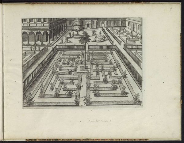 This anonymous print depicts a garden with a parterre, made at an unknown date, but held today in the Rijksmuseum. The garden, viewed from a high vantage point, presents a rigidly ordered space, characteristic of European gardens from the 16th century onwards. These gardens, often attached to palaces or stately homes, were more than just decorative. They visually asserted control over nature, mirroring the social hierarchy and the power structures of the time. In the Netherlands, the elaborate design of parterres – the meticulously arranged, level spaces in a garden – became symbols of wealth and status. During the Dutch Golden Age, these gardens provided spaces for social display, and even political negotiation. To understand this image better, we might consult historical garden plans, estate records, or even conduct soil analyses to see how these spaces were used and maintained. In doing so, we reveal the social and institutional meanings embedded in this seemingly simple garden design.