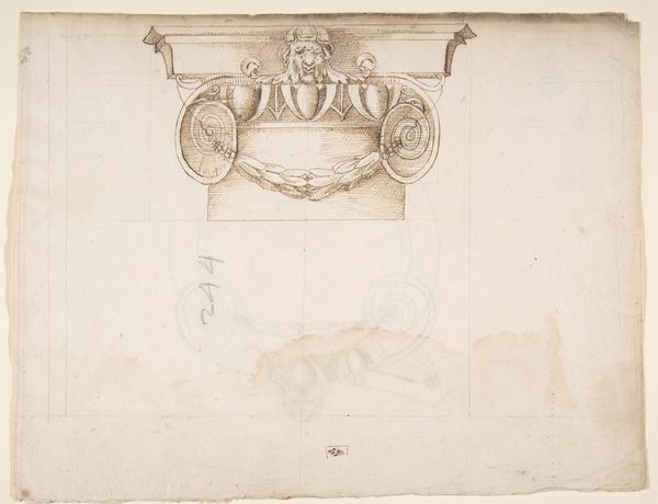 This drawing by Firma Feuchère is a design for an ornate mirror frame, likely dating from the 19th century. The elaborate detailing with classical figures reflects the period's fascination with history and status. The drawing itself speaks to the institutional context of artistic production. Feuchère was a firm specializing in ornamental metalwork, catering to an elite clientele who sought to express their wealth and taste through lavish furnishings. The mirror was not just a functional object but a symbol of social standing. Who were the consumers of luxury goods such as these? How did they use them to promote their status? The design would have reinforced existing power structures, reflecting the values of a society that prized wealth and refinement. We might look into archival records of the Feuchère firm to gain a deeper understanding of the social and institutional context in which this design was conceived.