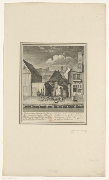 This is a lithograph of the Sint Janskerk in Gouda by Gijsbertus Johannes Verspuy. The eye is immediately drawn to the symmetry and geometric order within the composition. The church and surrounding buildings are rendered with precise lines, with a serene quality arising from the muted palette. Looking at the print, one can discern the artist's intent to capture not just the appearance of the church, but also its spatial and structural essence. The lithographic technique lends itself to capturing the texture and form of the architectural details with remarkable clarity. The perspective used creates a sense of depth, inviting the viewer into the quiet scene. The use of line and shadow constructs the buildings into solid forms, while the details of the canal reflect a moment of quiet reflection. This print serves as a semiotic marker of its time, a visual encoding of 19th-century Dutch society. It invites us to consider how spaces influence perception and memory, and how art mediates our understanding of place and time.