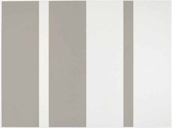 Editor: This is Alan Charlton’s "Horizontal Painting in 7 Vertical Parts," from 1996, crafted with acrylic paint. It’s…well, it’s very minimal. The repetition is almost meditative. What can you tell me about it? Curator: Note how Charlton restricts his palette, almost refusing colour, foregrounding the material presence of paint and the repetitive act of its application. Consider the ‘making’ visible. It is not an industrial production. How might Charlton, through repetitive acts of creation, mirror the monotony of factory labour, while simultaneously subverting it through artmaking? Editor: Subverting it how? Curator: Think about the traditional divide between "high art" and craft. Charlton blurs this line. Each stripe, while similar, possesses unique variations. The "hand" of the artist is evident, pushing against the uniformity that mechanized labour demands. Is this a commentary on de-skilling? Editor: That’s interesting! It makes me consider the physical process even more. I initially saw the seven parts as equal components. But each application, you are saying, has it own quality? Does the number seven have a symbolic relevance here? Curator: I encourage a close consideration of the labor inherent to repetitive practices and their socioeconomic conditions. Seven may carry connotations depending on your reading, but I’m interested in what that division, material division, means for how we understand process, artistic intention, and, even the market, that distributes works by someone like Charlton. Editor: That makes me think differently about minimalist art. I always thought it was about stripping everything away, but you’re pointing to what remains: the labour and materiality. Thanks! Curator: Absolutely. Understanding art through material analysis exposes complex relations to labour and capital, as the art work is first of all, materially grounded, no matter how reductive or elevated.