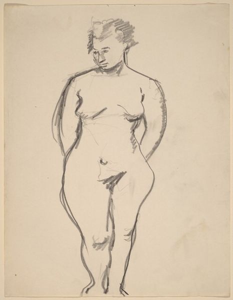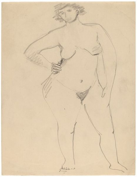 Here is Mark Rothko’s pencil drawing of a standing nude figure on paper. Rothko, who was born in Russia and later immigrated to the United States, created this drawing as part of his early exploration of figurative art. The drawing may have been made in the 1930s, a period marked by the Great Depression, and the rise of diverse cultural and political ideologies. The woman’s form, rendered with simple lines, brings a sense of vulnerability and introspection. Her face, turned towards us, engages the viewer directly, challenging the traditional objectification of the nude within art history. Rothko's decision to depict the figure in a realistic, rather than idealized manner, speaks to a desire to represent real bodies and perhaps a broader commentary on the lived experiences of women. Through this drawing, Rothko invites us to consider the intersections of identity, representation, and the complex dialogues between artist, subject, and viewer.