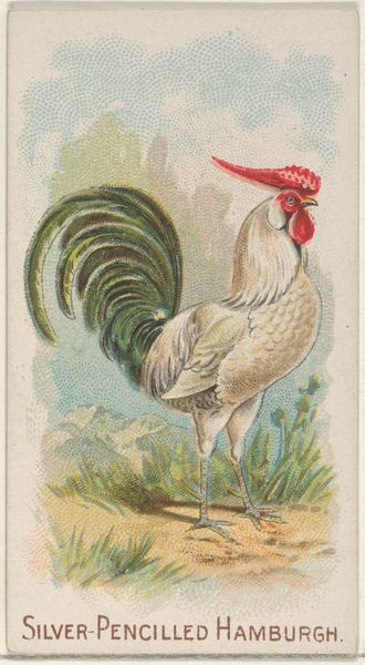This is an advertisement card for Allen & Ginter Cigarettes, featuring a "Wyandotte Cock (Silver Laced)" from their "Prize and Game Chickens" series. Produced in an era marked by industrial expansion and burgeoning consumer culture, these cards offer a glimpse into the late 19th-century fascination with categorization and display. What does it mean to classify and commodify living beings? The choice of a Wyandotte cock, with its silver-laced plumage, speaks to the aesthetic values of the time, and perhaps the values of the cigaret smoking public. But it also raises questions about selective breeding and the human desire to control and manipulate nature. The very act of naming and depicting this particular breed is loaded. While seemingly innocuous, this advertisement reflects deeper societal attitudes towards nature, commerce, and the ways in which we construct and market our desires. It serves as a reminder of the complex layers embedded within even the most commonplace objects.