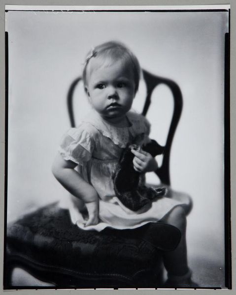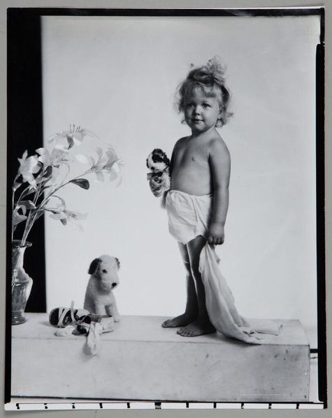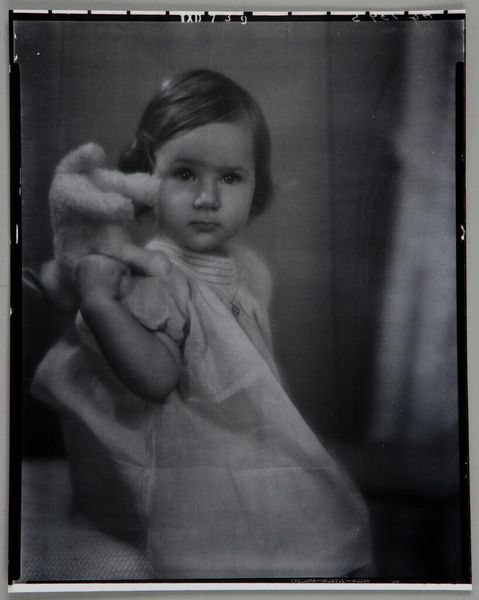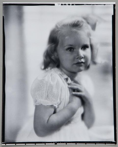 This silver gelatin print was created by Paul Gittings, a photographer known for portraiture. The creation of photographic prints involves darkroom processes and chemical treatments to develop the image from a negative. Here, we see a monochrome image, in shades of gray, achieved through the manipulation of light-sensitive materials. The texture and tonality of the print, from the soft gradients to the stark contrasts, reflect the artist’s careful control over this chemical process. Consider the labor involved, both in the studio setting and the darkroom: posing the subject, arranging the shot, and then the meticulous work of developing the print. Photography, from its very beginnings, has challenged our notions of what constitutes art, and its relationship to both craft and industry. The making process is one of skilled labor, requiring careful attention to detail, precision, and a deep understanding of the materials. Looking at the photograph this way reminds us to think about the expanded field of creative practice.