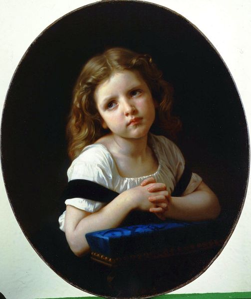 Curator: Here we have Rembrandt van Rijn's "Girl in the Window," painted in 1645. It resides here at the Dulwich Picture Gallery in London. Editor: She looks… pensively sweet. The subdued palette contributes to a gentle, almost melancholy mood, don’t you think? Curator: It's fascinating how Rembrandt constructed this scene. Oil paint allowed for such build-up and blending. Notice how he models the form of the girl against a dark space, creating a stark contrast between interior and exterior. I'm curious about the window itself as a product: was it newly manufactured glass, how was it acquired, what can the pigments tell us about availability and trade routes for the period? Editor: Yes, the play of light and shadow really draws the eye. And look at her face – the soft light illuminating her features. There is a certain archetypal "young maiden" quality, but also remarkable psychological depth. The window motif is powerful; is she awaiting someone, dreaming of escape? What feelings did it evoke in people of that period? Curator: Consider too how Rembrandt employed his students in the studio. Was this painted alone or with studio assistants, and how would collaboration affect its reception in the Dutch Golden Age art market? We should delve into Rembrandt's workshop practices to really unpack the material and social elements that are embodied within. Editor: I’m also drawn to what this image seems to be communicating about lost innocence. Windows frequently signify transitions, boundaries... childhood innocence, or maybe even a symbolic reference to a “girl on a balcony.” A subject very popular with European painters later. Curator: Ultimately, the creation and interpretation of this painting existed within a nexus of social practices: studio production, commodity exchange, gendered symbolism, and processes of image circulation. Editor: That's insightful, how those historical conditions shape visual languages, and enduring questions are echoed down through the ages, too. Curator: Indeed. Examining the materiality reminds us that there's a rich story beneath the surface representation. Editor: Absolutely, so many symbolic layers, making this much more than just a simple portrait, right?