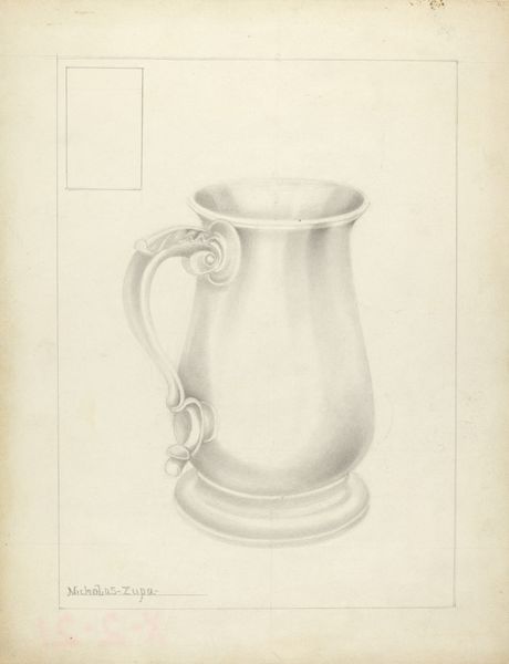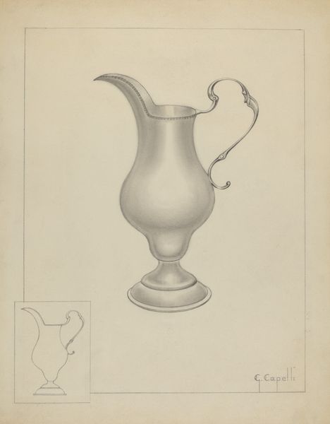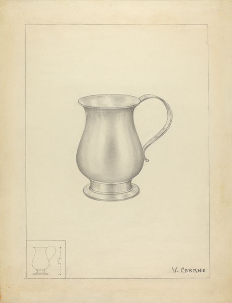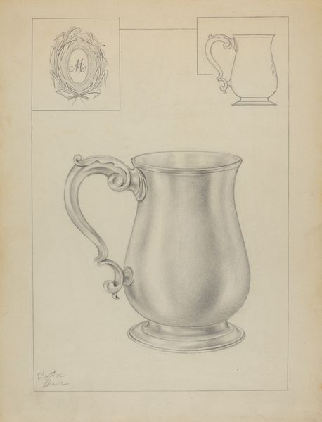 Isidore Steinberg made this drawing of a silver mug, though the date is unknown, with what looks like graphite on paper. It reminds me of the kind of observational exercises we were given in art school, trying to capture the fall of light on a simple object. The way Steinberg has worked the graphite, almost burnishing it into the paper, gives the mug a real sense of weight and volume. The subtle gradations of tone create a convincing illusion of three-dimensionality, a smooth, reflective surface. But there's also something slightly awkward about the drawing. It's as if the artist is more interested in the process of observation than in creating a perfect representation. Look at the base of the mug, how the line wobbles and thickens, or the almost diagrammatic sketch in the corner. It makes me think of Giorgio Morandi, with his quiet, contemplative still lifes, Steinberg also seems to be searching for something beyond the surface of things.
