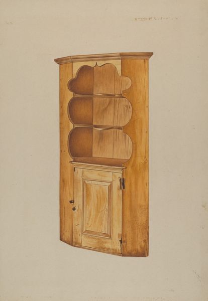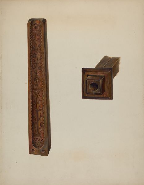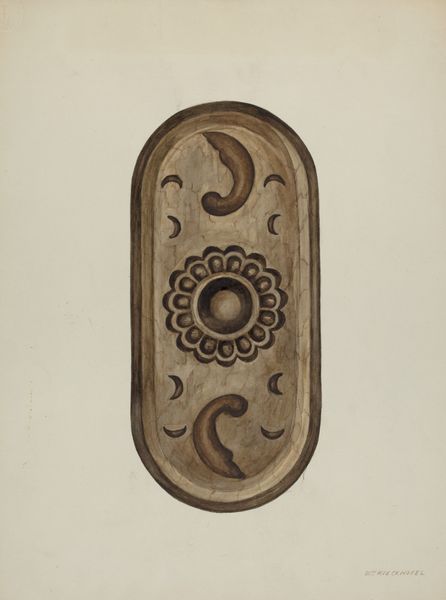 This is Eugene C. Miller's painting of a tobacco box cover. The cover itself would have been crafted from wood, likely planed and sanded for smoothness, and adorned with a decorative metal inlay. The choice of materials speaks volumes. Wood, a natural, workable substance, contrasts with the refined, possibly mass-produced metal element. Consider the labor involved: a woodworker carefully shaping the box versus the metal component created through industrial processes. The cover would have functioned as an object of both utility and perhaps also status, reflecting the rise of consumer culture and the commodification of leisure. Tobacco itself, of course, had a complicated history, being a product that was both pleasurable and tied to systems of exploitation. Miller's close study of the object invites us to reflect on the everyday items we often overlook, reminding us of the complex relationships between materials, making, and social context. It's a reminder that even the simplest objects have stories to tell.