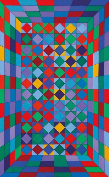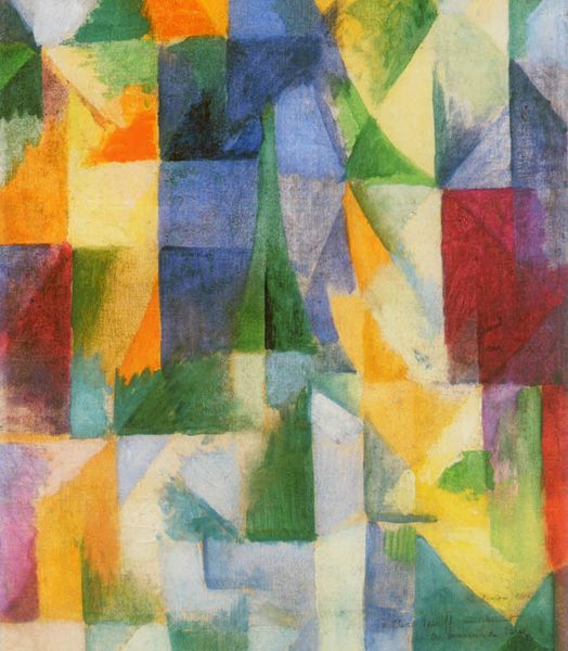 Editor: Here we have Kandinsky’s “Color Study, Squares with Concentric Circles” from 1913, rendered in watercolor. The pattern is very lively! What do you see in this work beyond the geometric pattern? Curator: Well, consider the historical moment. It's 1913, a period of intense societal transformation and upheaval across Europe, especially preceding World War I. Kandinsky, deeply engaged with avant-garde movements, was attempting to develop a visual language that could express the inner, spiritual realm, liberating art from mere representation. Can you see how the fracturing of form and vibrant use of colour challenge conventional expectations of visual harmony and representation? Editor: Yes, it feels like a deliberate break from the past, an attempt to find new meaning through pure form and color. Is there a connection between this search for the spiritual and the sociopolitical context of the time? Curator: Absolutely. Many artists felt a profound sense of alienation and disillusionment with the established order, particularly with its embrace of materialism and industrialization. Kandinsky sought a utopian vision through art, an alternative means of communication. These colour planes have emancipatory implications. What narratives might emerge if we foregrounded marginalized experiences in thinking about these artistic experimentations? Editor: That’s a powerful point. I never thought about this level of abstraction being related to the societal feeling. Curator: And isn't that exciting? Considering this work with that lens makes us rethink art history. Thinking about these colours outside the framework of the supposed “masters” might also suggest the power of art to challenge dominant narratives, to envision new futures. Editor: I see now how unlocking abstraction helps connect the spiritual and political—the interior and exterior world. Thank you.