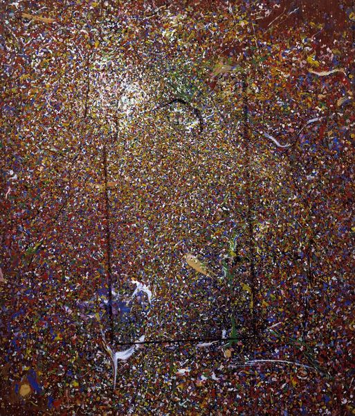 Enrico Baj created this portrait of Jackson Pollock using paint to explore themes of identity and representation. At first glance, the painting presents a field of swirling colors and textures, with blues, yellows, and browns intermingling across the canvas. But this is no mere abstract composition. Baj uses the formal qualities of the portrait to challenge conventional notions. The swirling brushstrokes and layered paint create a sense of depth, yet the overall image remains flat, denying the viewer a clear, singular perspective. It is a game of representation and obfuscation that invites us to consider how we construct and perceive identity. Baj’s abstraction destabilizes traditional portraiture, suggesting that identity is not fixed but fluid and multifaceted. The artist prompts us to question the nature of representation itself, asking whether a portrait can ever truly capture the essence of a person, or whether it merely presents a constructed image. This prompts ongoing interpretation of the work and the subject.