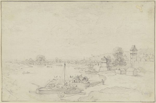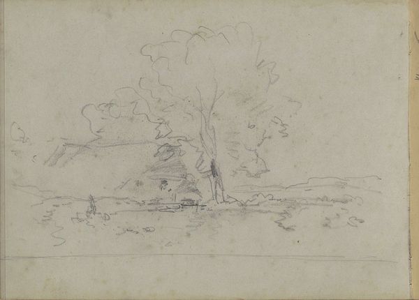 Curator: Wow, it feels so raw, almost unfinished. A landscape in muted tones. The figures huddled around a camp seem burdened, maybe a bit lost? Editor: That's Georges Michel's "Soldatenbivak," created sometime between 1773 and 1843. What strikes me is the immediacy—you get the sense he captured a transient moment. It's rendered in pencil and pen; a sketchbook drawing really. These men paused from the ravages of the battle. Curator: There's definitely a weariness to it. Those scraggly trees frame the scene like silent witnesses to some unspoken drama, lending itself to Romanticism as if Nature also suffers. Editor: Absolutely. The Romantic period fixated on the psychological toll of conflict, so, picturing the image within the time, the sketch speaks to the individual caught in the wheels of larger historical forces, and it’s interesting how we don't see heroic feats, but rather quiet moments of survival. How that survival impacts family dynamics. How, indeed, war can disrupt generations and affect society. It's as if Michel stripped bare any glorification, to reveal the reality of a moment during war. Curator: Right! I feel that rawness also contributes to it's authenticity. You know how the best poems catch you unawares and stab at the soul? Like that, it cuts deeper somehow. I want to look at it closer, feel what it's like. What could that soldier’s stories reveal about hope or love? Editor: Well, maybe we should resist romanticizing their weariness; we do well to remember that hope for them was a strategic mechanism and love a source of strength in enduring circumstances of brutality. What, for us, can these ‘moments of survival’ tell us about contemporary social strife, identity, or trauma today? Curator: Precisely, in its vulnerability lies strength, a kind of brutal honesty... like poetry carved from stone. Editor: Leaving us perhaps less with answers, more with urgent, enduring questions about human experience, don't you think?