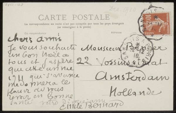 This postcard was written by Emile Bernard to Andries Bonger, we don't know exactly when, but it's a glimpse into their ongoing conversation. Look at this cursive! It has an urgency, a swiftness that reminds me of Cy Twombly's mark-making. The ink looks thin, almost transparent on the card's surface, and the pressure varies, creating a rhythm of thick and thin lines. See how some loops are barely there, while others press into the paper? It makes me think about how we choose what to emphasize, in art and in life. It is a really beautiful and playful surface. It feels so intimate, like catching a snippet of a private thought, yet it's there for anyone to see. Just like with a painting, the medium is the message: this invitation to "our charming countryside," extends beyond the literal words. It's about connection, about sharing beauty, about the simple act of reaching out. Which maybe, is what art's about, too.
