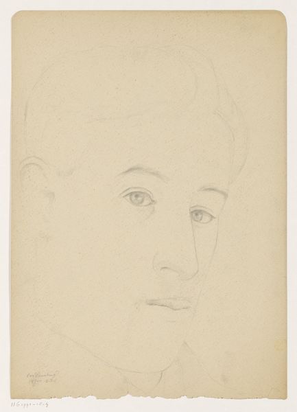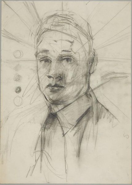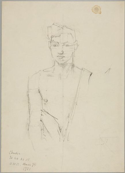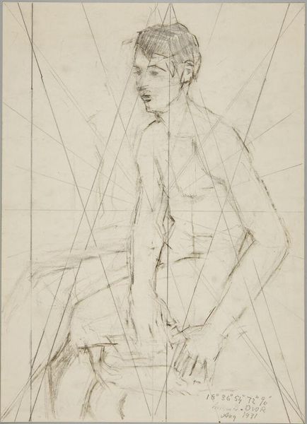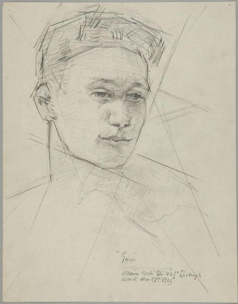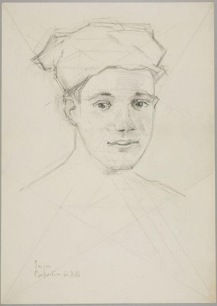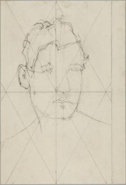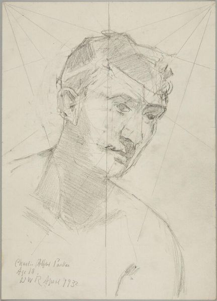 Curator: Let's turn our attention to Denman Waldo Ross's "Male Profile Head," residing here at the Harvard Art Museums. Editor: Immediately, I notice the angularity. It feels like a deconstruction of form, a study of planes rather than a celebration of flesh. Curator: Indeed. Observe how the underlying geometric framework supports and shapes the portrait. Note the precise angles marked at the bottom of the sheet. It appears as an analytical exercise, a pursuit of ideal proportions. Editor: The visible grid certainly directs the eye. This piece speaks to the artist's process, revealing the labor involved in constructing this portrait. It is a study of how the artist methodically builds form through calculation. Curator: And within that framework, we find a delicate rendering of the human face. The interplay of line and angle creates a compelling tension. Editor: Perhaps Ross was exploring the intersection of artistic intuition and methodical construction. Curator: Precisely. It's a fascinating glimpse into the artist's working method. Editor: Definitely. It’s a study in form and process that feels as contemporary as it does classical.