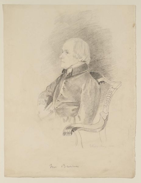 This is an undated portrait of Nicolaas Muys, made with pencil and watercolour by Gerardus Johannes Verburgh. The drawing presents a formal composition dominated by muted tones and a delicate application of color. The subject is depicted with precision, and the details of his attire are rendered with a delicate and focused approach. Verburgh’s attention to line and form over overt expression is striking. There's a subtle tension between the portrait's descriptive intent and its aesthetic execution. The portrait, rather than capturing the inner essence of the sitter, uses its formal elements to communicate ideas about representation. The hatching and cross-hatching techniques used to model the form, though traditional, introduce a layer of abstraction. This drawing becomes an exercise in visual language, where the artist explores the codes of portraiture. This portrait invites us to consider not just who is represented, but how the mechanics of representation themselves shape our understanding.