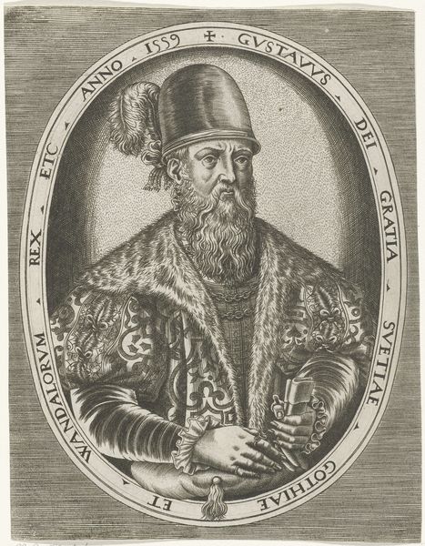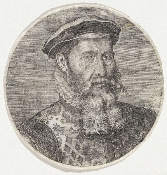 Curator: Let’s turn our attention to Hans Baldung’s striking portrait, painted in 1515, of Count Christoph I of Baden. What are your immediate impressions? Editor: He strikes me as both shrewd and burdened. The downturn of his mouth and weary eyes, contrasted with the finery of his clothing, suggest a man carrying heavy responsibilities. The composition also has an appealing balance with the triangle shape created with the count's gaze and hat. Curator: Precisely. And considering the context in which it was painted, those burdens were undoubtedly shaped by the religious and political upheaval of the era. Baldung, working during the rise of the Reformation, subtly portrays the Count in a manner that resists overt displays of power, hinting, perhaps, at anxieties about shifting allegiances. Editor: The hat itself is intriguing. The detailing, particularly the intertwined cord and jeweled cross, certainly speaks of religious symbolism and power. Is it specifically indicative of his status within the complex web of the Holy Roman Empire? Curator: Inarguably. It is fascinating how Baldung uses clothing to both communicate status and potentially to subtly critique it. Look at the way the Count is facing slightly to the left—challenging the assumption of total sovereignty. One can also look at the white clothing item laced at the throat that covers the majority of the upper torso as a kind of shielding device for defense. The fur creates the suggestion of someone on the edge of leadership—needing warmth and comfort from the elements and difficult position in court and in the earldom itself. Editor: I see it too. The light, from above left, appears to me not just for illumination. but rather casting some type of hope for the subject looking onward and upwards. There is much history imbedded in just this portrait of a man, Count Christoph I. Curator: Indeed. Baldung’s masterpiece functions on many levels. Beyond mere representation, the artist is making some bold commentaries of social change that we have yet to full recover in a study such as this one of Count Christoph. Editor: So many histories coalesce within one portrait, demanding more research and analysis into Baldung as an iconic visual messenger from the north.