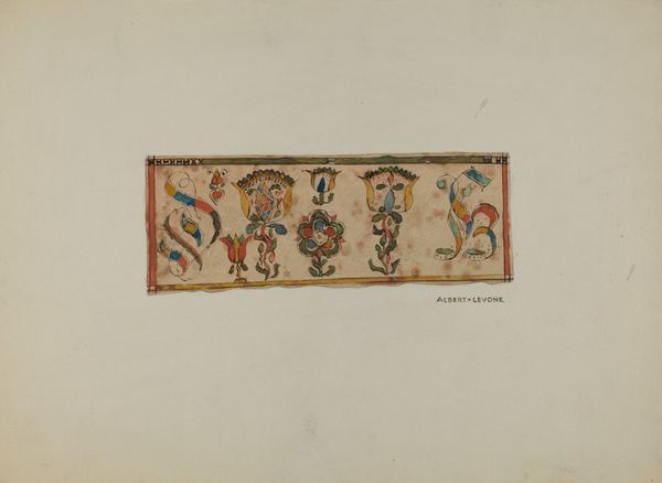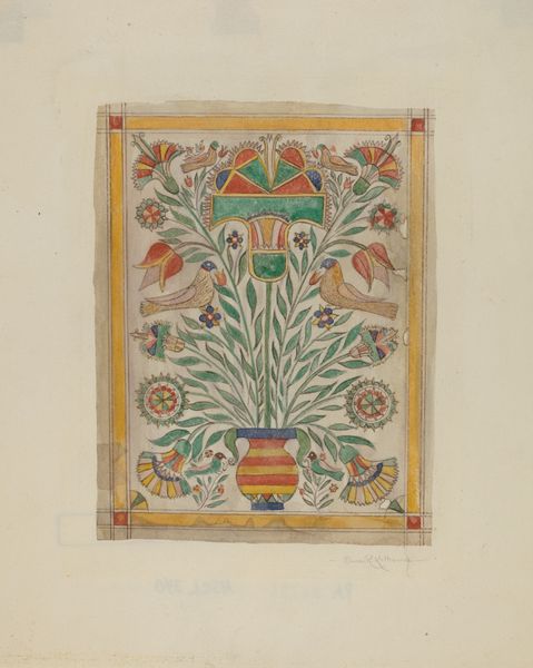 This painting on buckskin, part of a portfolio of Spanish Colonial Designs of New Mexico, feels like an echo of a time when art was intertwined with daily life. The anonymous artist isn't striving for realism, but for something more heartfelt. The palette is muted, earthy, with reds, greens, and blues dancing together in a way that feels both ancient and totally fresh. I love the way the artist approached the design with what looks like simple watercolor, almost like a child's drawing, but with a sophistication of an experienced hand. The flowers in pots remind me of Matisse but with an innocent charm. Look at the little bird perched among the leaves, a detail so tender it could break your heart. I think about artists like Forrest Bess or even Hilma af Klint, who created their own visual languages to express something beyond the surface of things. This piece reminds us that art isn't about perfection. It’s an invitation to feel, to imagine, and to connect with the human spirit across time.