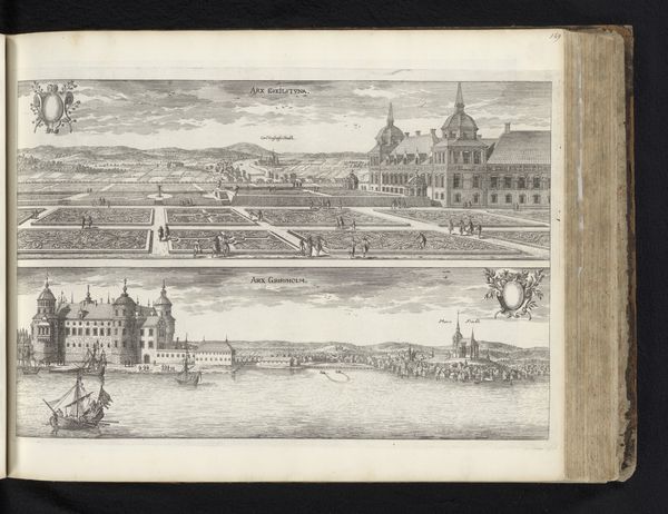 Willem Swidde made this print, "View from Salsta Castle," using etching techniques, sometime before his death in 1697. The image depicts a formal garden stretching from an elevated terrace towards a distant building complex. The rigid geometry and careful planning of the grounds speak to the social hierarchies of 17th-century Sweden, a period when aristocratic power was visually asserted through landscape design. But such images also played an important role within the history of printmaking. Pictures like this one testify to the rise of a commercial market for topographical views and architectural studies in the Netherlands and Sweden. Etchings circulated widely, informing ideas about taste, design, and social status. Understanding the context requires delving into the history of landscape architecture, the economics of print production, and the social function of aristocratic display during this time. By looking at estate records, design books, and the inventories of print sellers, we can better understand the world that made this image possible.