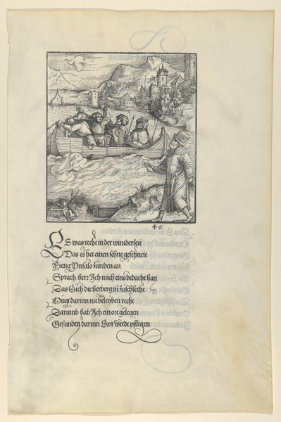 This woodcut, made by Hans Burgkmair around 1517, presents a dramatic scene with stark lines and contrasting textures. The composition is divided horizontally, with the upper portion dedicated to the illustration and the lower to text. The visual narrative focuses on a horse falling in a mountainous landscape. Burgkmair masterfully uses cross-hatching to create depth and shadow, emphasizing the instability of the terrain. The figures, rendered with precise detail, stand as witnesses to the event. This theatrical arrangement prompts a reflection on the hero’s journey. The image’s engagement with the ideals of chivalry and adventure presents a fascinating interplay between text and image. The formal elements guide our understanding and invite an ongoing re-evaluation of values and representation.
