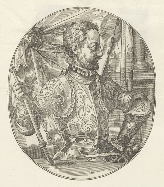 This is Edouard Hamman's "Portret van Alexander Farnese," an intimate etching made in the 19th century. Hamman, working in Belgium during a time of burgeoning national identity, revives a figure from the past. Farnese, a celebrated military leader of the 16th century, is rendered here with a palpable sense of authority. His armor, the symbol of his power, is etched with a delicate hand, contrasting with the softness of his face. The gaze is direct, almost confrontational. What does it mean to resurrect this figure in 19th century Belgium? Was Hamman questioning the concept of heroism or was he idealizing a past age? The print invites us to consider the role of historical figures in shaping national consciousness, and how the legacies of power continue to resonate across time. The act of remembering is, after all, always a political one.