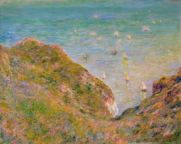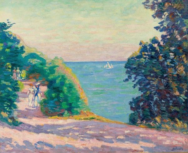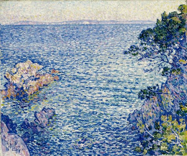 Maximilien Luce created "Les rochers à Agay" with oil on canvas. The composition, dominated by warm earth tones, sets a tranquil yet dynamic tone, immediately evoking the sensory experience of being at this coastal site. Luce’s engagement with Neo-Impressionism and Pointillism is obvious in the mosaic-like application of paint. Each tiny dab of color contributes to a larger field, merging individual perception with collective form. This technique, refined by artists like Seurat, moved beyond mere optical mixing to explore how individual elements coalesce into a unified whole. The structural aspect here is not just visual. It’s a commentary on how we perceive reality – fragmented yet cohesive, much like the social theories of the time that sought harmony in diversity. Luce doesn't just represent a landscape; he reconstructs it through a prism of structured color, inviting us to consider how order and chaos coexist in our perception of the natural world.