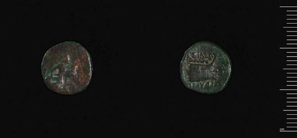 Editor: Here we have a coin of Alexander the Great from Salamis. It's small and worn, but it's clearly stamped with images. What do you see in this piece? Curator: This coin embodies power and representation. It's a symbol of Alexander’s empire, yes, but also a carefully constructed image meant to disseminate a particular message. How did coins function as propaganda? What narratives did they reinforce about Alexander's authority, divinity, and the very idea of empire itself? Editor: So it's not just money, it's a statement. Curator: Precisely! Consider how coinage standardized not only economic exchange but also visual language. The coin becomes a tool for cultural imposition, reflecting the ideals and power structures of the dominant culture onto the conquered territories. Editor: That makes me see it in a totally different light. Thanks! Curator: Of course! It's vital to examine how ancient objects can reveal the complexities of power, identity, and cultural exchange.