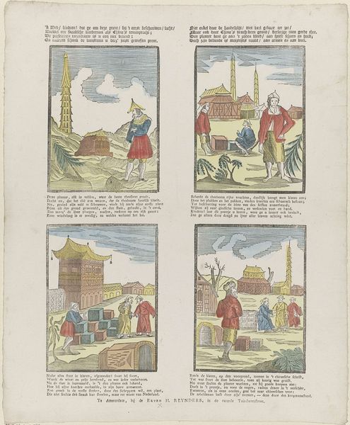 This undated print by Erve H. Rynders, currently held at the Rijksmuseum, offers us a glimpse into the values and pastimes of the Dutch youth. The print is divided into four scenes, each accompanied by a rhyming verse. In the first three scenes, the youth observe rural scenes, encountering a farmer with his cows, an agricultural worker plowing a field, and a man carrying poultry. The fourth is of children playing near a canal. The artist’s inscription suggests these scenes are not merely for visual pleasure, but for moral instruction, directing the youth to "consider first three useful things, and let the fourth delight your spirit." These images reflect the period’s emphasis on the importance of moral education and social responsibility. By showcasing the virtues of rural labor, the print implicitly encourages young viewers to embrace hard work. The final scene of children playing offers a moment of levity, showing a scene of childhood freedom. The text below the images tells us that the print was produced by a bookseller. This artwork, in its own way, provides a window into how societal values were carefully imparted to the next generation, inviting us to reflect on our own upbringing.