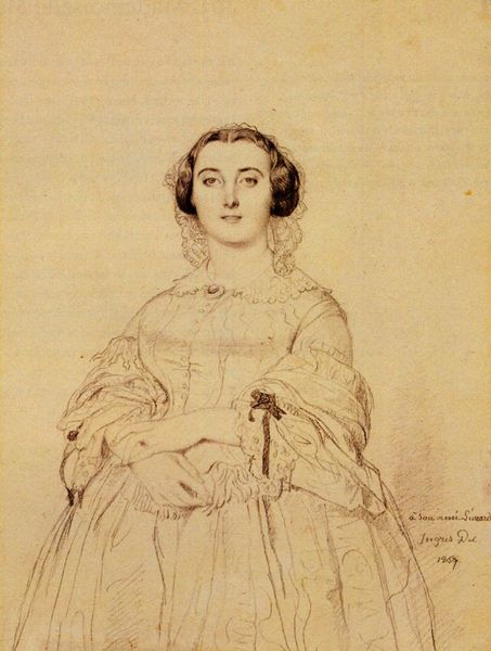Jean Auguste Dominique Ingres made this drawing of Madame Felix Gallois with graphite on paper. Ingres’ portraits reflected the social and cultural values of the 19th-century French elite. Madame Gallois is depicted with a demure gaze and a composed posture, embodying the era's ideals of femininity and domesticity. The soft lines and delicate shading enhance her gentle appearance. Yet, we might consider the unspoken narratives. What aspirations and experiences lay beneath the surface of Madame Gallois' composed exterior? Ingres' portraits often served as symbols of status and lineage. As viewers, we are positioned to see the subject through a lens of admiration and respect, yet we must also consider the power dynamics inherent in portraiture of this era. What does it mean to capture someone's image, and how does this act shape our understanding of their identity? What is lost? What is found?