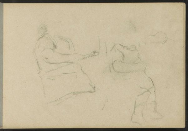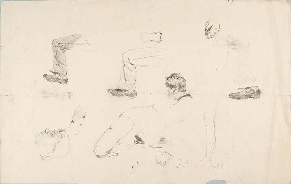 Curator: Immediately I see a hushed stillness, despite the crowd. It's as if Bosboom has captured a moment of serene reflection amid daily life. Editor: Indeed. Here we have "Women and Children in Scheveningen Costume", a pencil drawing on paper, made by Johannes Bosboom around 1873. It's currently held here at the Rijksmuseum. What symbolic resonance do you find here? Curator: For me, the costumes themselves act as potent symbols. Traditional garb roots these women and children in a specific time and place – a proud display of Scheveningen identity. The variations in dress might even indicate different social strata or familial roles within the community, speaking volumes about their world. Editor: You're right, it’s a tableau of social relationships, carefully composed. The sketches, seemingly unfinished, invite us to imagine these women's lives. The simplicity, though, makes me think of memories--fragmented and soft-edged. Curator: Precisely! The artist uses minimalism to evoke feelings of nostalgia. We can consider the historical context too. This piece emerges during a time when industrialization and urbanization were threatening traditional ways of life. Editor: So it functions almost as a visual preservation effort. Capturing and celebrating a fading cultural heritage before it disappears entirely? It's both melancholic and…dare I say… hopeful, suggesting a desire to keep these traditions alive in memory. Curator: Yes, Bosboom appears to use these costumes as almost emblems or totems. They act as a continuous cultural thread stretching into both past and future generations, encapsulating heritage and identity. There's so much wrapped up in the deceptively simple scene. Editor: It really resonates. You've provided a lens into not only this culture but also what could potentially vanish. And here it stands as an important piece that should definitely continue to be pondered on. Curator: Thank you, and thank you for illuminating these subtle layers alongside me, this drawing is an open book of sorts. Editor: Agreed, let's keep this book open, inviting endless insights from these visual markers from history.