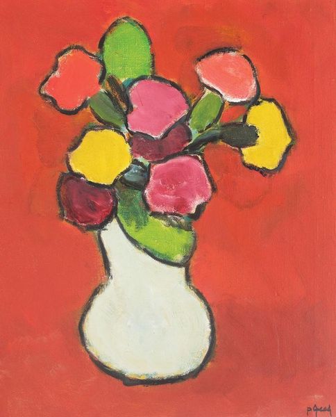 Bela Czobel’s "Still Life with Flower" is rendered with pastel. The composition immediately draws us in with its soft, muted palette and diffused forms, creating a dreamlike atmosphere. The structural interplay between the blurred background and the loosely defined floral arrangement destabilizes traditional still life conventions. Czobel's approach to color and form can be seen as a dialogue with early modernist ideas, particularly in how the lack of clear boundaries challenges fixed modes of perception. The hazy textures push against the traditional definition of form in art. The flowers, arranged in the vase, appear to float and blend into the pictorial space, creating ambiguity. Through this diffusion, Czobel seems to question our expectations of what a still life should represent, inviting a more fluid understanding. Ultimately, the painting invites us to reconsider the boundaries between representation and abstraction, object and space.