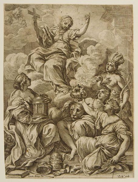 This engraving shows three saints—Matthias, Paul, and Simon—each holding an object associated with their martyrdom, rendered by an anonymous hand. Consider Paul, in the center, who grasps a sword. In early Christian iconography, the sword is the quintessential attribute of Paul, referring to his execution by beheading. Yet the sword's history stretches far earlier, to the Bronze Age, when it symbolized power and authority. The Greeks saw it as both a tool of war and a sacred object. In Paul's hand, the sword represents divine justice, a motif echoing through centuries of art. Think of Michelangelo’s *Last Judgement*, where angels wield swords. The sword is a constant, yet its meaning shifts, evolving with cultural memory. It embodies humanity's complex dance with power, sacrifice, and transformation, reflecting the enduring influence of these archetypes on the human psyche. The past is never truly gone; it resurfaces, transformed, in our present.