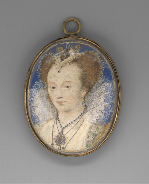 Editor: Here we have Karel van Mander III’s "Den udvalgte prins' gemalinde, Magdalene Sibylle", made sometime between 1624 and 1670. It's such a delicate little portrait, encased in what looks like a silver frame. There’s a dreamy quality to it, almost like she’s captured in a fleeting thought. What stands out to you when you look at this piece? Curator: Oh, this miniature sings to me of whispers and secrets! Van Mander has captured not just a likeness, but an aura, hasn't he? The softness of the watercolor… it's as if the artist has breathed life onto this tiny oval. Imagine Magdalene Sibylle herself, a princess viewed as a "selected consort." But who selected her and what considerations contributed to this important title and potential marital future? What does this choice mean for Magdalene herself, and what were the stakes for Karel when immortalizing her through art? These portraits are more than meets the eye; they're narratives carefully woven with pigment and intention, no? Editor: That's a beautiful way of putting it – "narratives woven with pigment." The context really brings the image to life. It makes me wonder about the artist’s relationship with his sitter, especially when dealing with royalty. Do you think he had much freedom in how he portrayed her? Curator: Freedom? A tightrope, my dear! Every brushstroke laden with diplomacy. Van Mander had to capture her likeness, of course, but also project her suitability. It’s not about what she was necessarily, but what she represented to the crown. Editor: So much pressure! I'll definitely look at portraits differently from now on. Thanks for sharing your insights. Curator: The pleasure was mine! Now you see it as more than just a picture of a person, no?