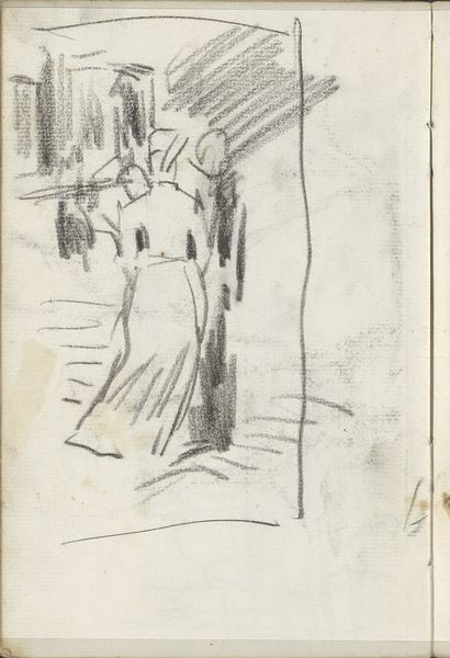 This drawing, Figuren in de Galgenstraat te Amsterdam, was done by George Hendrik Breitner, but when is anyone's guess. It’s a simple sketch, isn’t it? Just a few figures outlined in charcoal, or maybe it's conte crayon, hard to tell. But look at how Breitner uses these quick, almost impatient lines to capture the weight and presence of the figures. The texture of the paper peeks through, creating a sense of immediacy, like we're right there with the artist, watching these people pass by. The way he's suggested the folds of the clothing with just a few strokes is amazing. See that single, confident line that defines the back of the central figure? It's not just a line; it's a whole history of looking and seeing. It reminds me a little of Daumier's drawings of everyday life. Anyway, it’s a good reminder that art is not about perfection, but about the messy, beautiful process of trying to capture a moment.