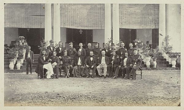 This group portrait of English military officers, including Major Pierre Louis Napoleon Cavagnari, was made by John Burke sometime in the late 19th century. The artwork is a photograph, a process that depends on the interaction of light and chemistry, capturing a specific moment in time. The material qualities of photography – the tones, the focus, the contrast – all contribute to its aesthetic. The photograph's sepia tone and soft focus evoke a sense of nostalgia, while its composition and arrangement of the figures convey a sense of formality and authority. Photography was, at this time, a technology closely tied to burgeoning capitalism and mass media; a tool for documentation, propaganda, and the dissemination of images. In its own way, this image encapsulates a moment in the history of empire-building, made possible by labor, technological advancement, and political will. The photograph, a medium often overlooked as “craft,” is revealed to be a crucial artifact of its time.