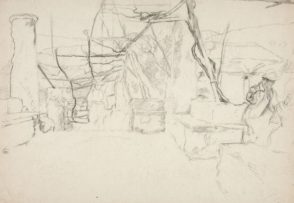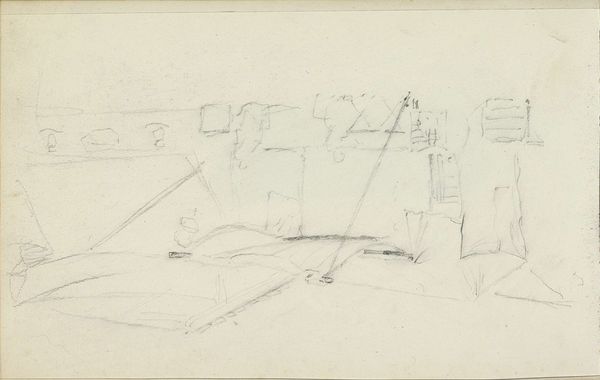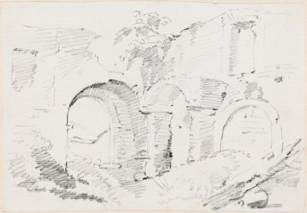 Editor: This is John Ruskin’s "Bridge at Lauffenbourg," a delicate pencil drawing. The sketchiness really highlights the architecture. What do you see in this piece? Curator: Notice the labor involved. Ruskin meticulously renders the bridge's structure. How does the materiality of pencil – its accessibility – democratize art-making here? Editor: It's interesting how he uses such a simple medium to depict something so permanent. Curator: Indeed. Consider, too, how the drawing's creation itself becomes a form of engagement with the environment and social changes. Does this immediacy resonate with you? Editor: Absolutely. It makes me consider the relationship between the artist, the subject, and the tools used to capture it. Curator: Precisely, seeing the material conditions and social context redefines our understanding. Editor: That’s a fresh way to think about it. Thanks!