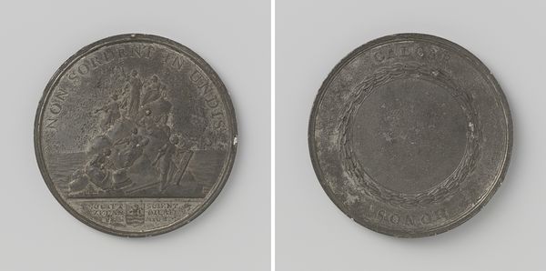 This medal, crafted by Jan Luder, commemorates William III's victory over James II at the Battle of the Boyne. The imagery presents potent symbols of triumph and liberation. Note William III on horseback, a classical motif of power and authority, directly recalling images of Roman emperors. The horse, a recurring symbol throughout art history, signifies nobility, control, and martial prowess. Equestrian statues, from Marcus Aurelius to countless Renaissance leaders, have long served to project an image of invincible command. But observe, too, the subtle vulnerability implied: the rider's dependence on the beast. This dynamic is echoed in the battle scene below, where chaos and defeat are juxtaposed with William's composed figure. This contrast amplifies the emotional impact, engaging viewers with themes of victory and deliverance that resonate deeply within the collective psyche. The motifs of the horse and rider carry echoes of ancient mythologies, evolving through time yet retaining their core association with power, dominance, and the eternal dance between order and chaos.