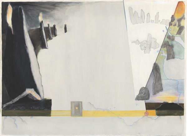 Editor: We’re looking at “Shellac Orientale” by Jim Dine, created between 1973 and 1974. It's a mixed media piece that seems to combine drawing and painting, maybe with collage? I'm immediately struck by the… layering. There’s a real sense of depth despite the flat surface. What do you see in this work? Curator: I'm drawn to the interplay of textures. Note the impasto effect created with pastels alongside the smoother areas of blended color. How do these contrasting textures affect your perception of the objects depicted? Editor: I hadn’t really thought about it like that. The rough texture makes those forms feel more present, almost tangible, compared to the other more faded images, which seem further away. Is that on purpose? Curator: Dine is known for incorporating everyday objects into his art. Notice the frequent depiction of tools—the saws, scissors—and their placement within the composition. How does the arrangement of these forms, their relationships to each other, guide your reading of the work? Editor: The tools do stand out. Maybe the arrangement feels a bit chaotic. Is that tension between order and chaos part of the point? Curator: The layering and juxtapositions can create a sense of visual tension. This may prompt you to seek connections between these seemingly disparate elements, ultimately influencing the way you see form and surface in contemporary mixed-media works. Editor: That's a cool idea, to seek the connections. Thank you. This reminds me to pay attention to how different elements on the surface can guide what I think of the underlying image. Curator: And considering texture is key! Thank you!