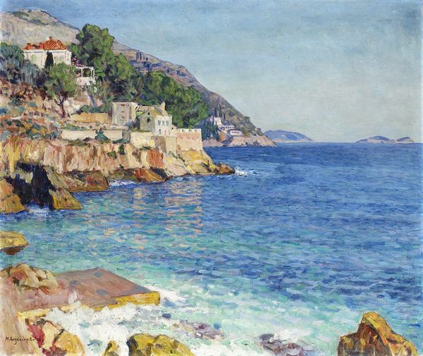 Konstantin Gorbatov created "Fishermen Street, Capri" using oil on canvas, and its picturesque view initially invites you into a scene bathed in sunlight, reflecting off the white buildings and the turquoise sea. Gorbatov’s composition uses a high horizon line, compressing the scene and focusing attention on the architectural forms and the active sky. The structural arrangement—the rhythmic placement of buildings against the backdrop of the sea—suggests a concern with the interplay of form and light. The brushstrokes, thick and visible, add a tactile quality to the painting, emphasizing its materiality. This approach destabilizes traditional landscape painting by prioritizing surface texture and structural clarity over illusionistic depth. Ultimately, it is the tangible presence of the paint, and the way light models the forms, that holds our attention. Gorbatov's work, therefore, becomes not just a depiction of a place, but an exploration of the aesthetic possibilities inherent in the paint itself.