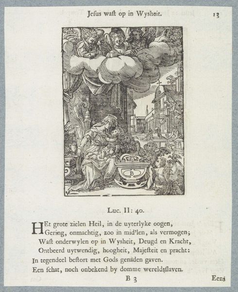 This engraving, made by Christoffel van Sichem II, illustrates the Biblical story of the seven years of abundance in Egypt. The figures hauling grain and the overflowing granaries are potent symbols of prosperity, resonating with ancient agricultural societies' dependence on successful harvests. This motif of abundance is not unique; we see echoes in ancient Roman cornucopias and harvest festivals dedicated to deities. It expresses a universal desire for nature's bounty and the fear of scarcity. Looking closer, the well-dressed figures overseeing the collection of grains remind me of similar scenes in medieval tapestries depicting courtly life. The composition and symbolism around the act of collecting and storing food carry a powerful emotional weight – the hope for survival and the deep-seated anxiety about the future. This visual language of prosperity serves as a recurring theme throughout art history, evolving and adapting to reflect the specific cultural and historical contexts in which it appears.